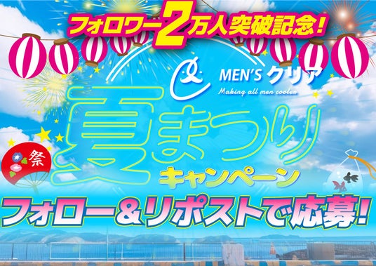 株式会社クリア(本社:東京都渋谷区、代表取締役社長:勝沼 潤)が運営するメンズ脱毛サロン「メンズクリア」は、公式Xにて2024年7月16日(火)より「フォロワー2万人到達記念!夏まつりキャンペーン」を開催します。