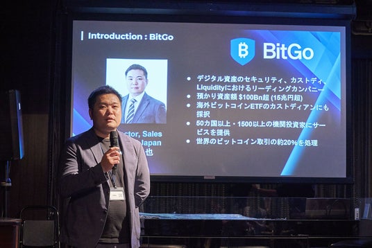 BitGoの柳澤氏は、BitGoの事業概要を紹介。米国に本社を構えるクリプト資産のカストディアンとして、日本でもウォレットサービスを提供しており、グローバルでの預かり資産が1,000億ドル(約15兆円)、同社を通してのステーキング資産もグローバルトップレベルに成長していることを説明。米国のビットコインETFのカストディ業務も担っていることを強調し、資産の安全性確保を最優先とするBitGoの役割について言及しました。