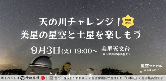 ~日本初の星空保護区3か所が連携する同時星空観賞会の開催が決定!9月3日(火)東京都神津島村・岡山県井原市・福井県大野市で実施~