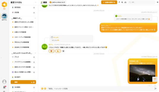 コミュニティ内では、神津島へ現地視察に行った際の写真の共有や音声配信のアナウンスなど、星にまつわる話題で盛り上がっています。今後もコミュニティの参加メンバーを募集していきますので、ご参加ください。