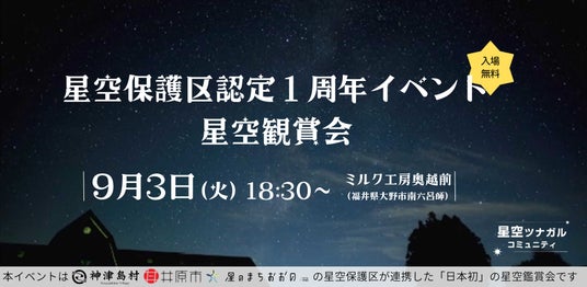 福井県大野市では、星空保護区認定1周年を記念したイベントを開催いたします。