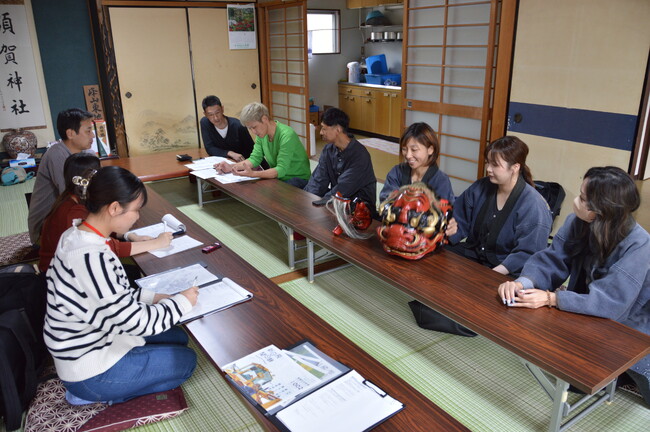 「地域計画学演習」は、「持続可能なまちづくり」をテーマにして、大学と地域団体が連携し地域の課題解決や活性化を図ることを目的とした京丹後市のプログラム「夢まち創り大学」の支援を受けて実施しました。学生は、京丹後市峰山東地区でまちづくりに携わっている住民に話を伺い、祭礼行事やイベントについて調査をする等のフィールドワークを進めてきました。