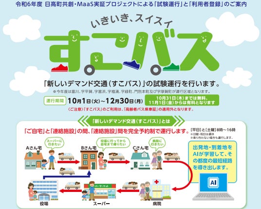 ~令和6年10月1日より北海道日高町にて新しいデマンド交通「すこバス」の試験運行を開始します~