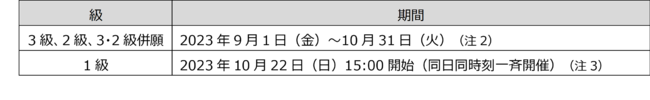(注2):3級及び2級の受検日は上記の期間内で選択が可能です。