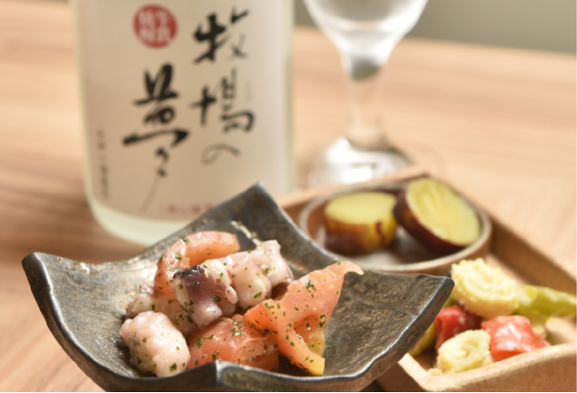 ・熊本県産トマトとタコの大葉マリネ ※ディナーの各コースの前菜にて提供(季節メニューは除く)