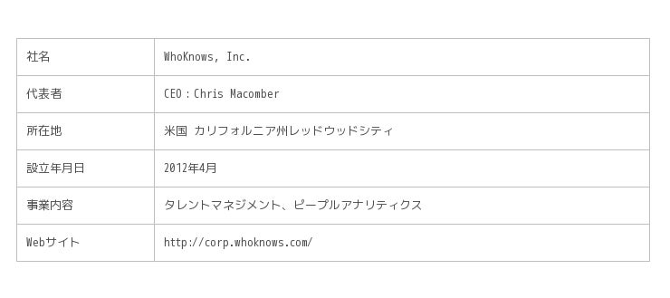 総合人材サービス、パーソルグループのテンプホールディングス株式会社(本社:東京都渋谷区、代表取締役:水田正道、以下テンプホールディングス)は、従業員のスキルと関係性を可視化し、従業員の生産性向上を支援するWhoKnows, Inc.(本社:米国 カリフォルニア州、CEO:Chris Macomber、以下WhoKnows)への出資を決定いたしました。なお本出資につきましては、Temp Innovation Fund合同会社(本社:東京都渋谷区、代表パートナー:加藤 丈幸、以下Temp Innovation Fund)を通じて実施いたしました。