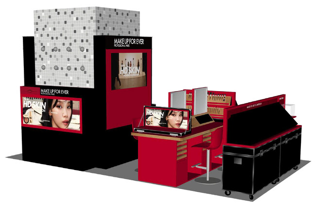 レッドカーペットを辿った先にあるステージの上のメイクボックス。MAKE UP FOR EVER(メイクアップフォーエバー)のDNAが詰まったメイクボックスの世界観の中で、機能的でアーティスティト性溢れる製品をご堪能ください。
