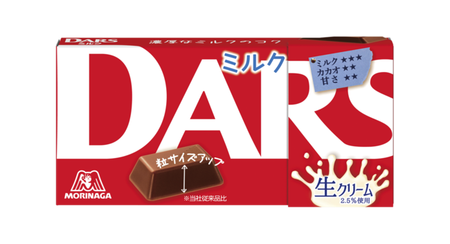 チョコレートの原料といえばカカオですが、「ダース」ではカカオよりも、さらにこだわったのがミルクです。「ダース」は、ミルクを軸とした幅広いミルクの味わいのラインアップを展開しており、今回のリニューアルにおいて、食べ応えやミルクの味わいの満足感を上げるため、ひと粒のサイズを約10%増量しました。「ダース」の品質リニューアルと幅広いミルクの味わいのラインアップにより、ますますチョコレート市場を盛り上げてまいります。