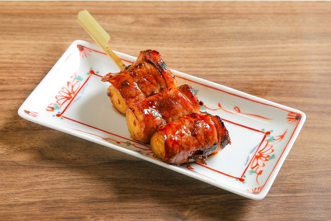 鴨肉ロースで焼きネギを巻きました。鴨串専用に開発した「謹製山椒ダレ」でお召し上がりください。