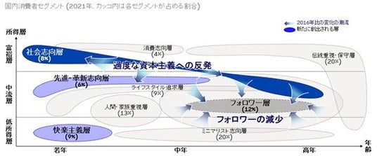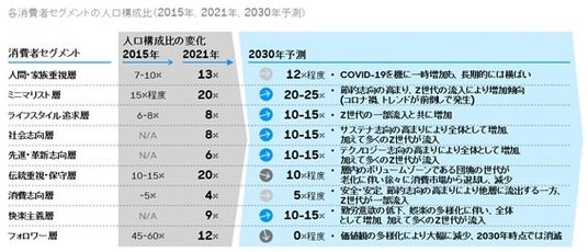 - 価値観の多様化により、2030年時点でフォロワー層は消滅の見通し
