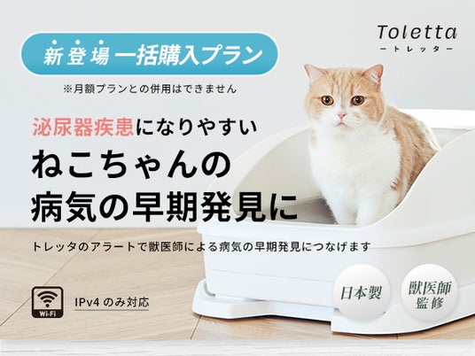 カメラ付きIoTスマートねこトイレ「Toletta(トレッタ)」を手掛ける株式会社トレッタキャッツ (代表取締役:堀 宏治)は、猫の日である2024年2月22日より新たに『一括購入プラン』の販売を開始いたします。新プランのリリースを記念して、Amazonおよびホームページのトレッタ公式ショップでビックセールをスタート!より多くの愛猫家の皆様にトレッタをご利用いただきたく、是非この機会にお買い求めください。