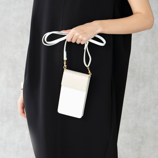 カラー:4色(ホワイト×アイボリー、ベージュ×ゴールド、ブラック×パイソン、ベージュ×サックス)