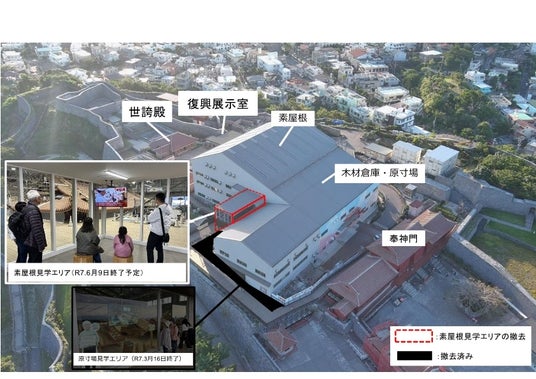 なお、素屋根見学エリアの供用終了後は、有料区域内の首里城復興展示室や世誇殿(よほこりでん)等で、復元工事の最新の状況を映像や実物模型などで紹介していきます。