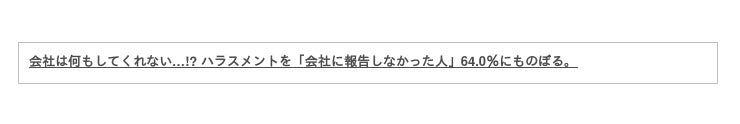 今回の調査では、ハラスメントを受けた際、会社に報告した方はわずか36.0%で、報告したと回答した方でも、「(会社は)何もしてくれなかった」が47.2%という結果でした。実際に起きているハラスメントの数に対して、会社側がその事実を把握できている数や、適切な対応ができている数は、想像以上に少ないのかもしれません。
