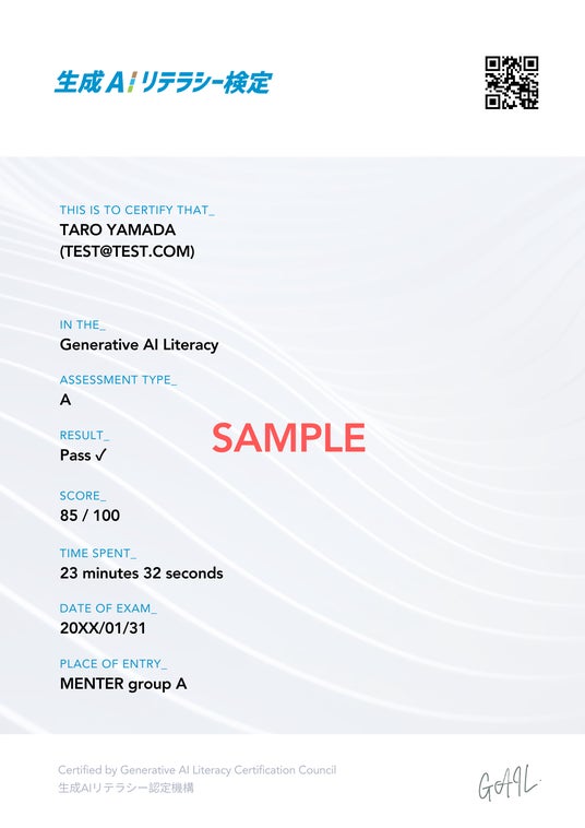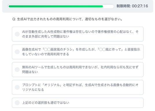 - 生成AIを安全で効果的に取り扱うための「運転免許」として生成AIリテラシーを資格認定。オンラインで気軽な測定を実現 -