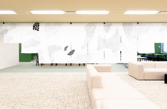 本リニューアルではオーナーさんの商売繁盛を願う長さ14メートルの特注暖簾を設置したり、全国各地のオーナーさんが「STORES(ストアーズ)」で販売している商品を実際に試せるコーナーを設けるなど、お商売を身近に感じる工夫を取り入れています。