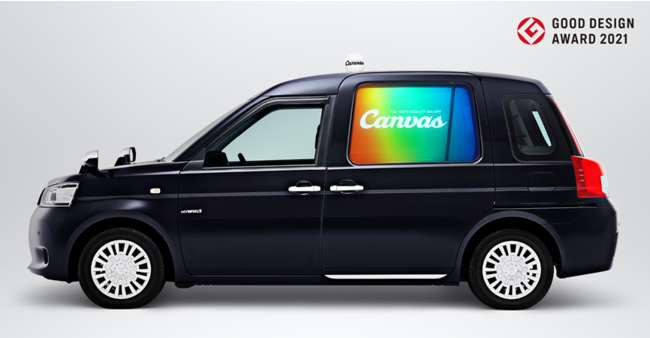 「東京の街をギャラリーに変える」をコンセプトに、都内を走行するタクシー車両の空車時間を活用して、タクシーの後方のサイドガラスに広告を映し出す国内初の車窓モビリティサイネージサービスです。2021年5月31日より、大和自動車交通株式会社、国際自動車株式会社のJPN TAXI 100台で運用を開始。その後段階的に対象車両を増加し、S.RIDEの株主タクシー会社が保有するJPN TAXIを中心に搭載していく予定です。将来的には従来の屋外広告の枠を超え、タクシーアプリ「S.RIDE」で取得した位置情報などのデータと連携し、ロケーションや時間帯に最適化した広告やその他情報を表示できるよう開発を進めていく方針です。2021年度グッドデザイン賞受賞。