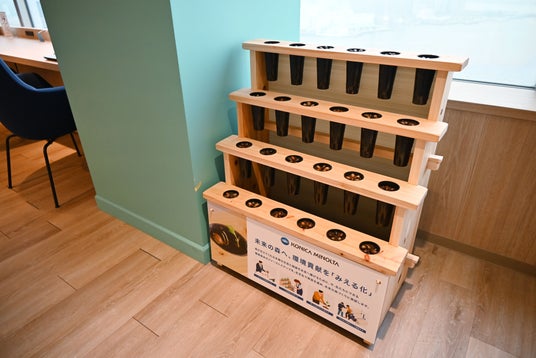 「戻り苗」はオフィスなどの室内で観葉植物としてどんぐりの苗木を育て、2年後に山へ植樹することによって、地域の森林を再生し、生態系の保持や土砂災害の発生しにくい森づくりに貢献する取り組みです。オフィスにいながら未来の森づくりに携わることができ、森林保全活動をより身近なものとして感じられることが特長です。