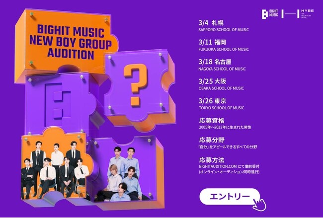 韓国の総合エンターテインメント企業「HYBE」傘下の芸能事務所による世界水準の新人発掘オーディションの応募受付を開始!