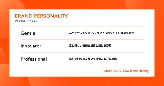 新ブランドパーソナリティ「Gentle:ユーザーに寄り添い、フラットで頼りやすい真摯な姿勢」「Innovator:常に新しい価値を創造し続ける姿勢」「Professional:高い専門知識と確かな技術力とプロ意識」
