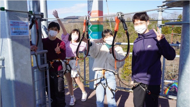 標高370mの山頂に出現した様々な吊り橋を命綱だけを頼りに渡る絶叫吊り橋アトラクション「風天」ではリアルマッチングイベントを開催。最大男女4名ずつまでお楽しみいただけるため、友達同士のグループの方に楽しんでいただけるようになっています。期間通しての参加者は約80名!たくさんの方にご参加いただきました。