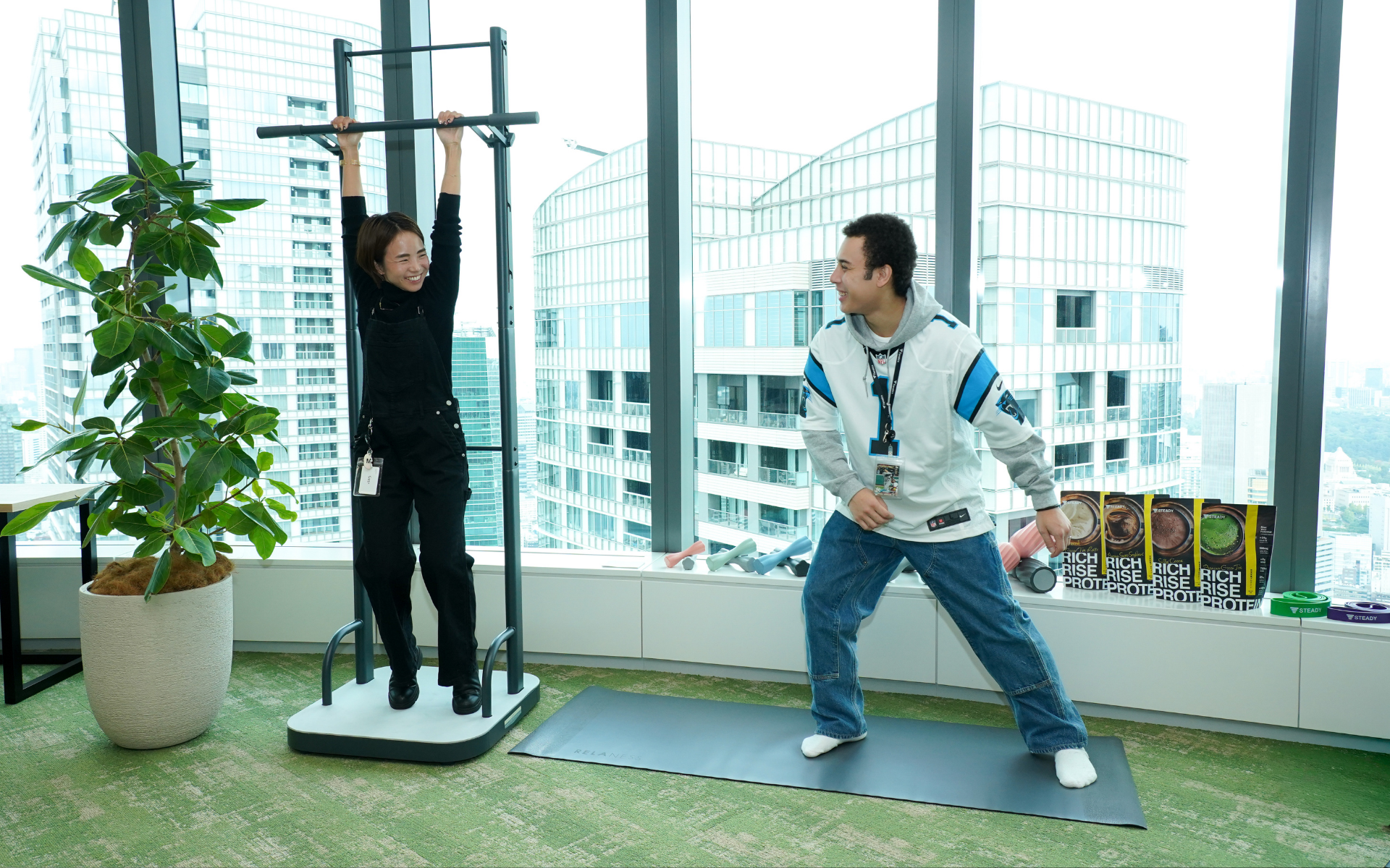 本導入により、働く前・合間・終業後に“フィットネスを通じて心身を整える”行動が自然に生まれ、部署横断の会話やコラボレーションが活発化するなど、健康経営と社内コミュニケーションの両面での効果が期待されています。