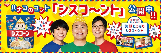 日清シスコ株式会社(社長:浅井雅司)は、お笑いトリオのハナコを起用した、「シスコーン」の新WEB動画「ハナコのコント『シスコ~ント』 」を公開します。第一弾、「小学校の先生の悩み」篇は6月13日(月)より、第二弾の「実況!シスコーン坊やの朝食風景」篇は6月20日(月)より公開で、「シスコーン」特設Webサイト及び、ハナコ公式YouTubeアカウント「ハナチャン」にてご覧いただけます。