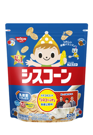 コーンフレークの国内No.1ブランド(*1)である「シスコーン」シリーズは、"手軽においしく、簡単に栄養がとれる朝食" として、多くのお客さまからご愛顧いただいています。今年の3月にリニューアルを行い、新たに1食分あたり10億個の乳酸菌を配合しました。(*2) 現在、「シスコーン フロスト」では「ハナコのコント『シスコ~ント』」をご覧いただけるQRコード付きのキャンページパッケージを発売しています(期間限定)。