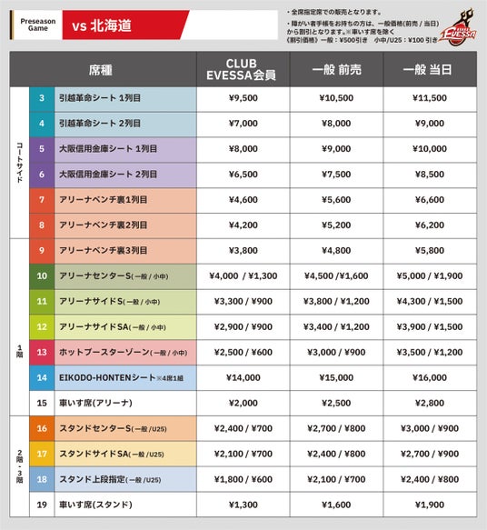 ※一部の座席についてはおおきに祭関係者やクラブ・メディア関係者席として、また、演出機材設置のための座席として使用するため販売はございません。