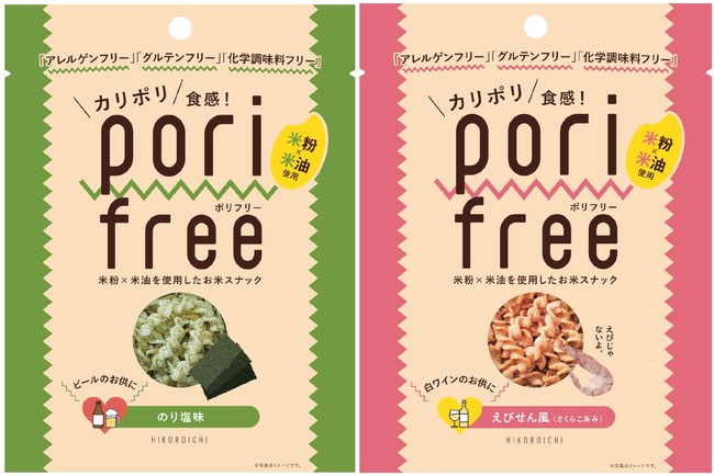ポリフリーは、「グルテンフリー」、「アレルゲンフリー」、「化学調味料フリー」と3つのフリーを実現した、お酒シーンに合わせて生まれたお米のスナック菓子です。原料には岩手県産のうるち米を使用し、カリポリとした食感が出るように米油で揚げられています。