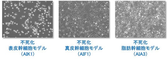 今回、これまでに樹立した3種類の幹細胞モデル(不死化表皮幹細胞モデル、不死化真皮幹細胞モデル、不死化脂肪幹細胞モデル)を、公的な細胞バンクであるJCRB細胞バンク(国立研究開発法人 医薬基盤・健康・栄養研究所)に寄託しました。これにより、世界の研究者が自由に3種類の幹細胞モデルを活用できるようになります(寄託した幹細胞モデルは、JCRB細胞バンクでの準備が整い次第、分譲が開始されます)。