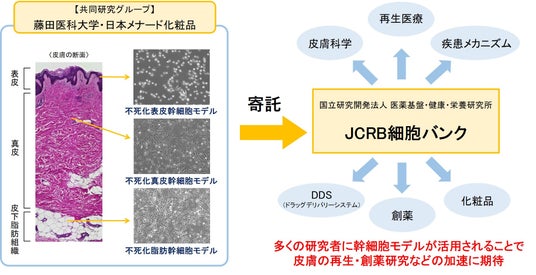日本メナード化粧品株式会社(愛知県名古屋市中区丸の内3-18-15、代表取締役社長:野々川 純一)と藤田医科大学医学部(愛知県豊明市沓掛町田楽ケ窪 1番地 98)応用細胞再生医学講座(教授:赤松 浩彦)及び皮膚科学講座(教授:杉浦 一充)の研究グループは、これまでの共同研究から独自に樹立した3種類の皮膚幹細胞モデルを公的な細胞バンクであるJCRB細胞バンク(国立研究開発法人 医薬基盤・健康・栄養研究所)に寄託しました。今後、多くの研究者がこの幹細胞モデルを活用できるようになり、皮膚の再生医療の研究や基礎研究への応用が期待されます。