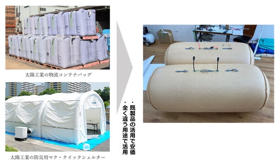 大型膜面構造物(テント構造物)や土木・物流資材などを手がける太陽工業株式会社(東京本社:東京都世田谷区、大阪本社:大阪市淀川区、社長:能村 祐己)は、株式会社栗本鐵工所(本社:大阪市西区、代表取締役社長:菊本 一高)の橋梁補修工法の開発に協力してきました。このほど栗本鐵工所が販売開始した「エアーチューブ工法」において、当社の物流コンテナバッグの製造技術と防災関連製品であるマク・クイックシェルターのエアーチューブ構造技術を応用した製品が採用されました。