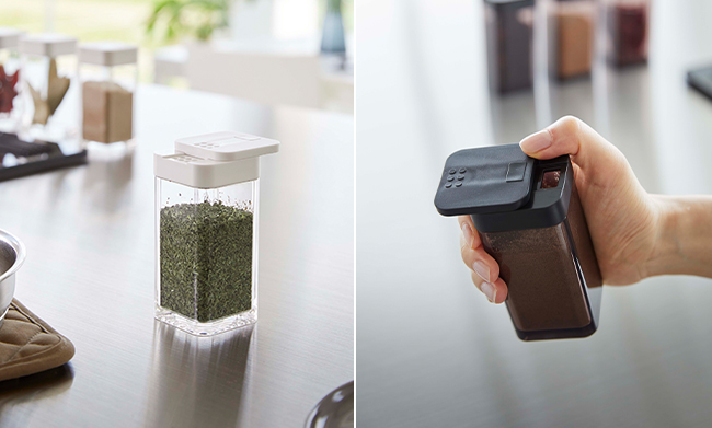 使いたい量が片手で調節できるラージサイズの調味料保存容器。