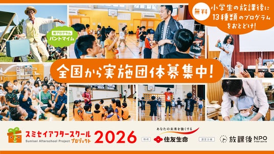 「日本中の放課後を、ゴールデンタイムに。」をミッションに活動する特定非営利活動法人 放課後NPOアフタースクール(以下「放課後NPOアフタースクール」)は、住友生命保険相互会社(以下「住友生命」)と協働で実施する「スミセイアフタースクールプログラム(後援:文部科学省)」の2026年度実施団体を募集します。