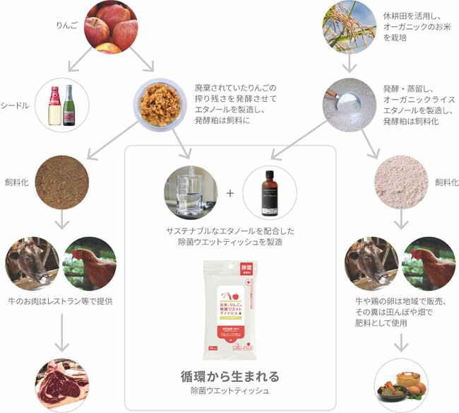 ■「お米とりんごの除菌ウエットティッシュ」循環図