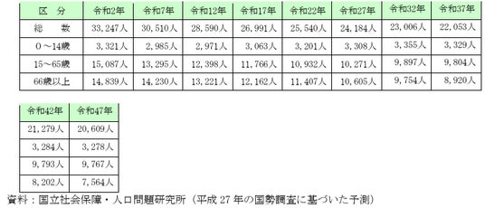人口の見通し (第2期豊後大野市まち・ひと・しごと創生総合戦略)