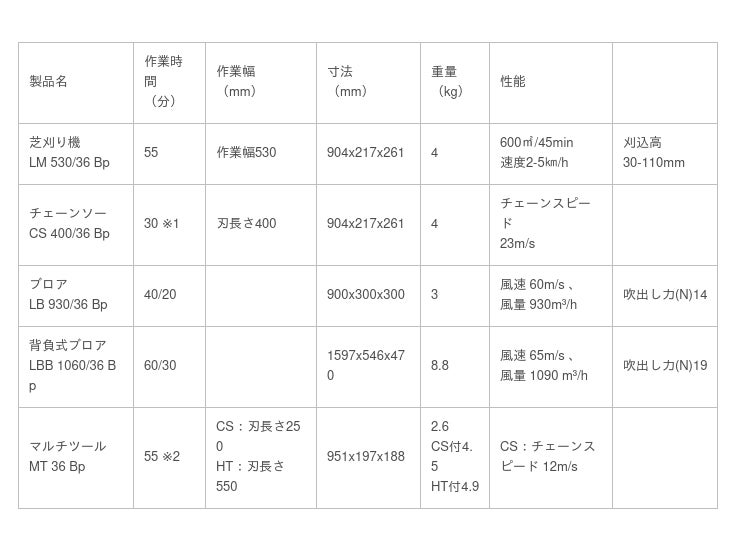 ※2: 6/6cm角材の場合500回使用可能(36V/7.5Ahバッテリー使用の場合)