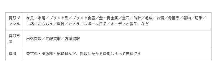 また、ウリエルの買取は、オーディオ製品以外にも大型家具家電・日用品・着物などの幅広いジャンルに対応可能です。