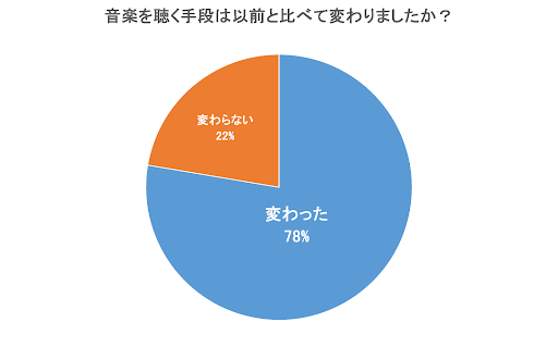 「音楽を楽しむ手段は以前と比べて変わりましたか?」という質問に対しては、78%が「変わった」と回答し、「変わらない」と回答した人は22%にとどまりました。