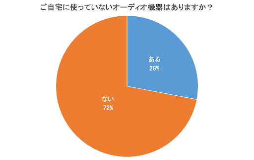「ご自宅に使っていないオーディオ製品はありますか?」という質問に対して、「ある」と回答した人が28%、「ない」と回答した人が72%という結果となりました。