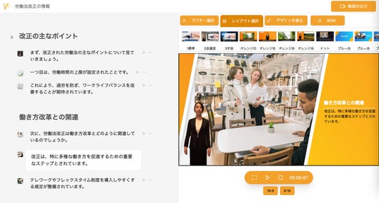 このツールは、テキストやファイルをアップロードするだけで、AIが自動的にデータを解析し、最適な構成で動画を作成することが可能です。従来の動画制作の手間を大幅に軽減し、業務効率化を支援します。