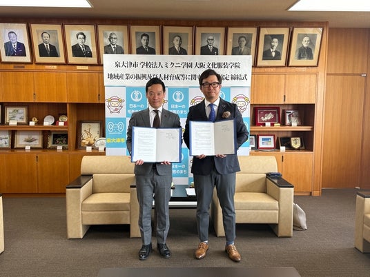 デザイナーおよびファッション人材を育成する大阪文化服装学院(以降OIF、学校法人ミクニ学園 理事長:豊田晃敏 所在地:大阪市淀川区三国本町)と 泉大津市(市長:南出賢一)は、泉大津市の地域産業の振興や人材育成等により活力ある個性豊かな地域社会の形成と発展に寄与することを目的に、連携協定を締結致しましたことをお知らせします。
