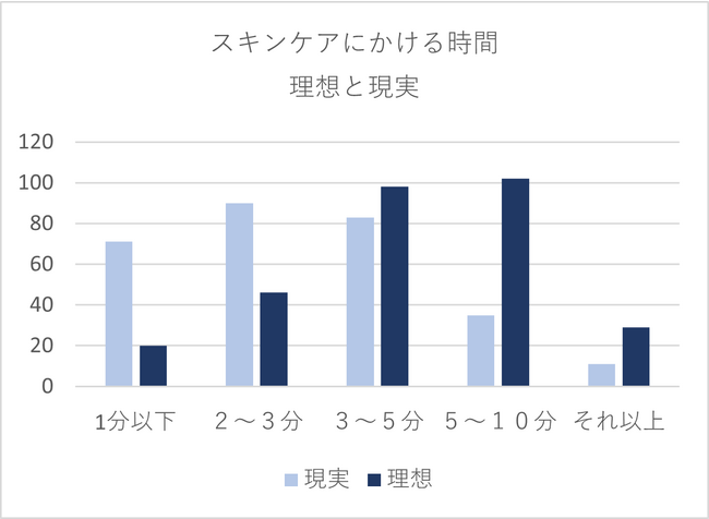 ■お風呂後のスキンケアについて、スキンケアにかける実際の時間/