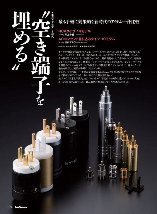 コンポーネントの空いた端子に使う、国内外さまざまなタイプのオーディオアクセサリーを一堂に集め、評論家の井上千岳氏・炭山アキラ氏が行った比較試聴のレポート。最も手軽で効果的な新時代のアイテム、その効果とは。