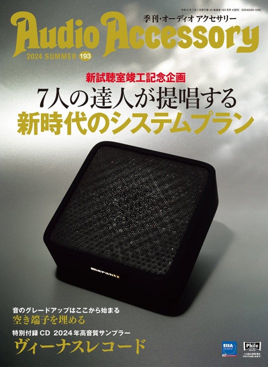 高音質再生を追求するピュアオーディオの専門誌「オーディオアクセサリー」の最新 193号が、5月27日(月)に発売となりました。本誌を発行する音元出版がオーディオ機器の評価に欠かせない試聴室を2024年4月に新設。今号のさまざまな取材企画で、新試聴室が初披露され、見応えのあるコンテンツが展開されています。また日本にジャズのパラダイスを作り続けてきた「ヴィーナスレコード」の10曲をセレクトしたサンプラーCDを特別付録とし、オーディオ評論家の福田雅光氏の聴きどころ解説記事とともにお届けしています。