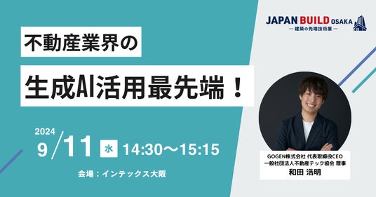 不動産売買支援ハブ「レリーズプラットフォーム」の開発・提供をするGOGEN株式会社(本社:東京都港区)の代表取締役CEO:和田 浩明が、2024年9月11日(水)より開催される「第8回JAPAN BUILD OSAKA 」セミナーに、一般社団法人不動産テック協会の理事として登壇します。