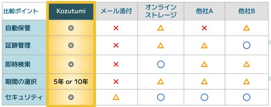 Kozutumiは、自動保管・証跡管理・即時検索・保管期間の明確化を一体で提供します。