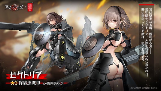 ほかの時空からここに辿り着いた少女騎士ビクトリアです。「正々堂々勝負する」というモットーを現すかのように、ビクトリアの正面装甲は非常に堅牢であり、彼女自身も百発百中のスナイパーですよ!