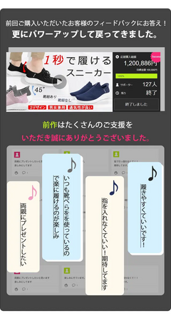 前回の「1秒で履ける靴」を購入されたお客様から多くの「カラー・サイズを増やして欲しい」というお声をいただきました。